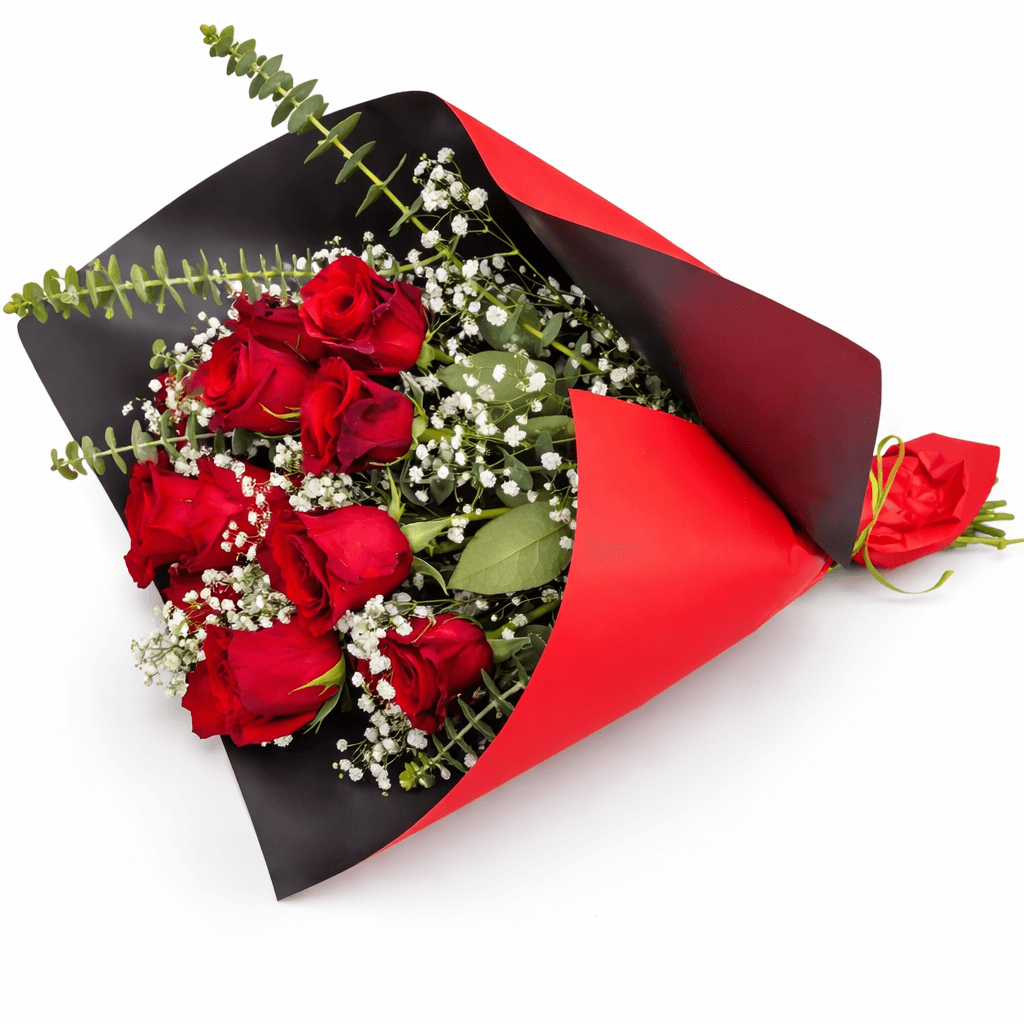 Ramo atado de rosas rojas